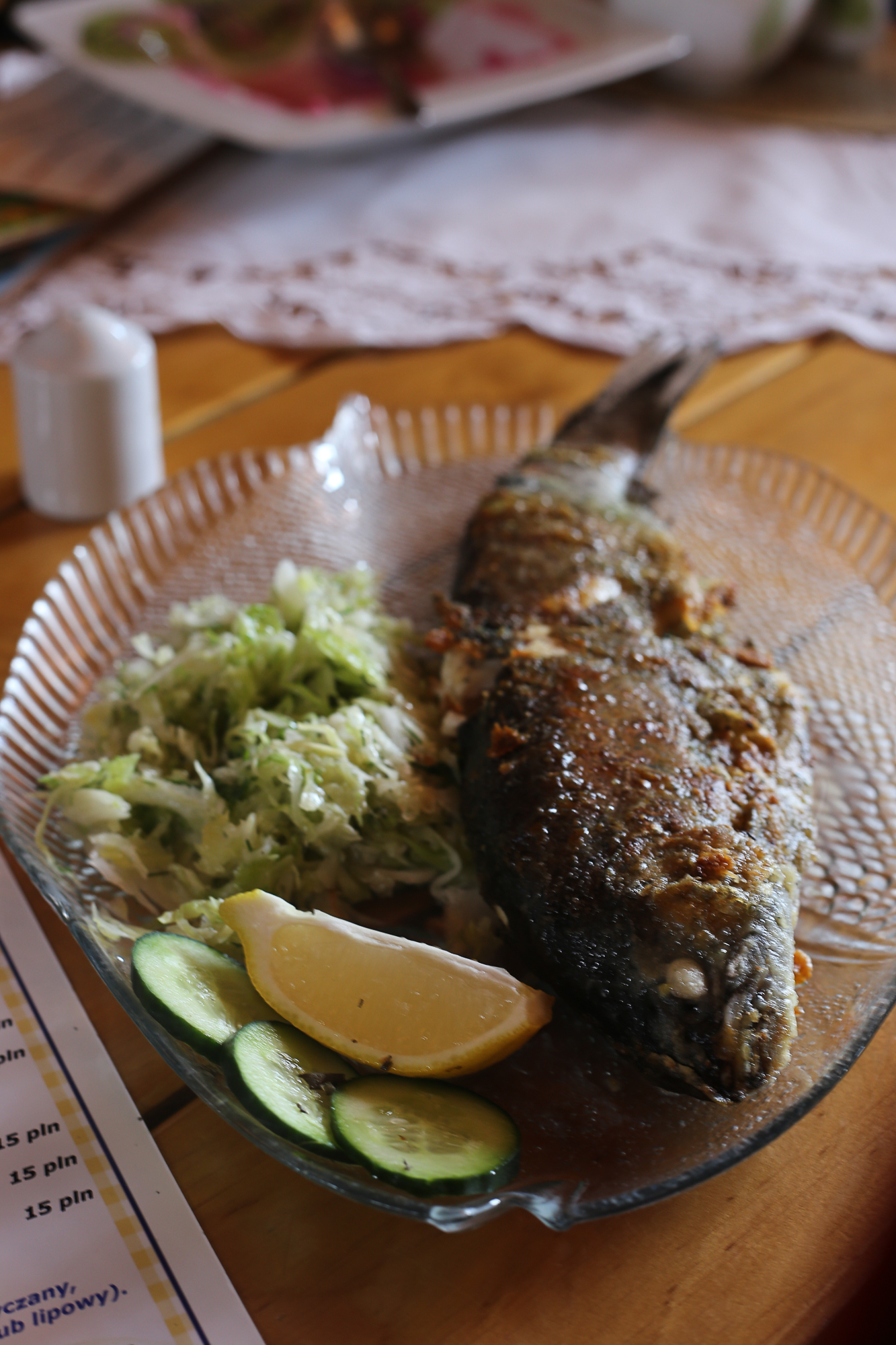 Pierwsza i najwieksza wtopa – to „Karczma pod Gołębiem” w Nidzicy. Reklamy wzdłuż trasy zapraszają na festiwal ryb. Z zewnatrz wyglada bardzo zachęcająco, w środku też ujdzie 🙂