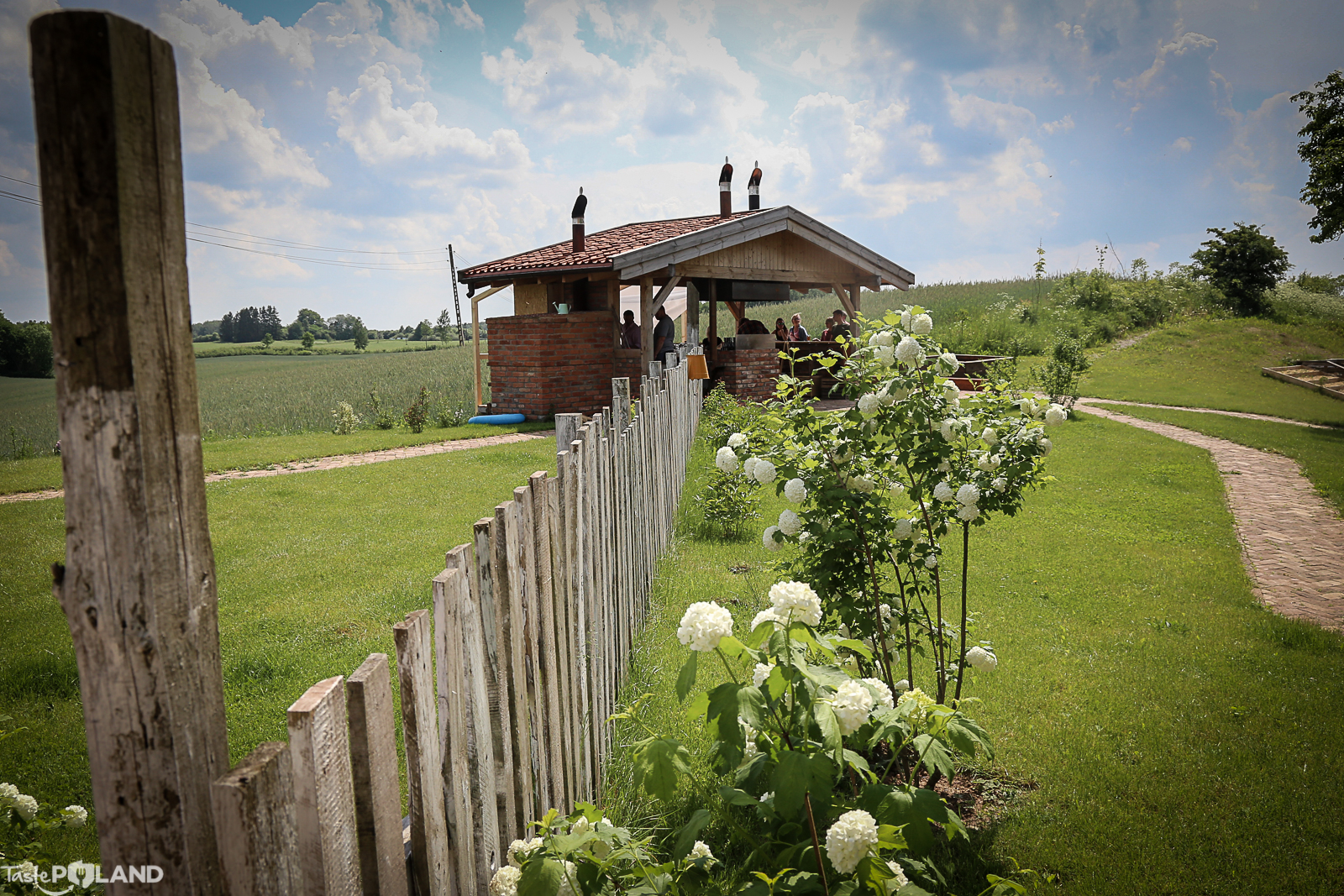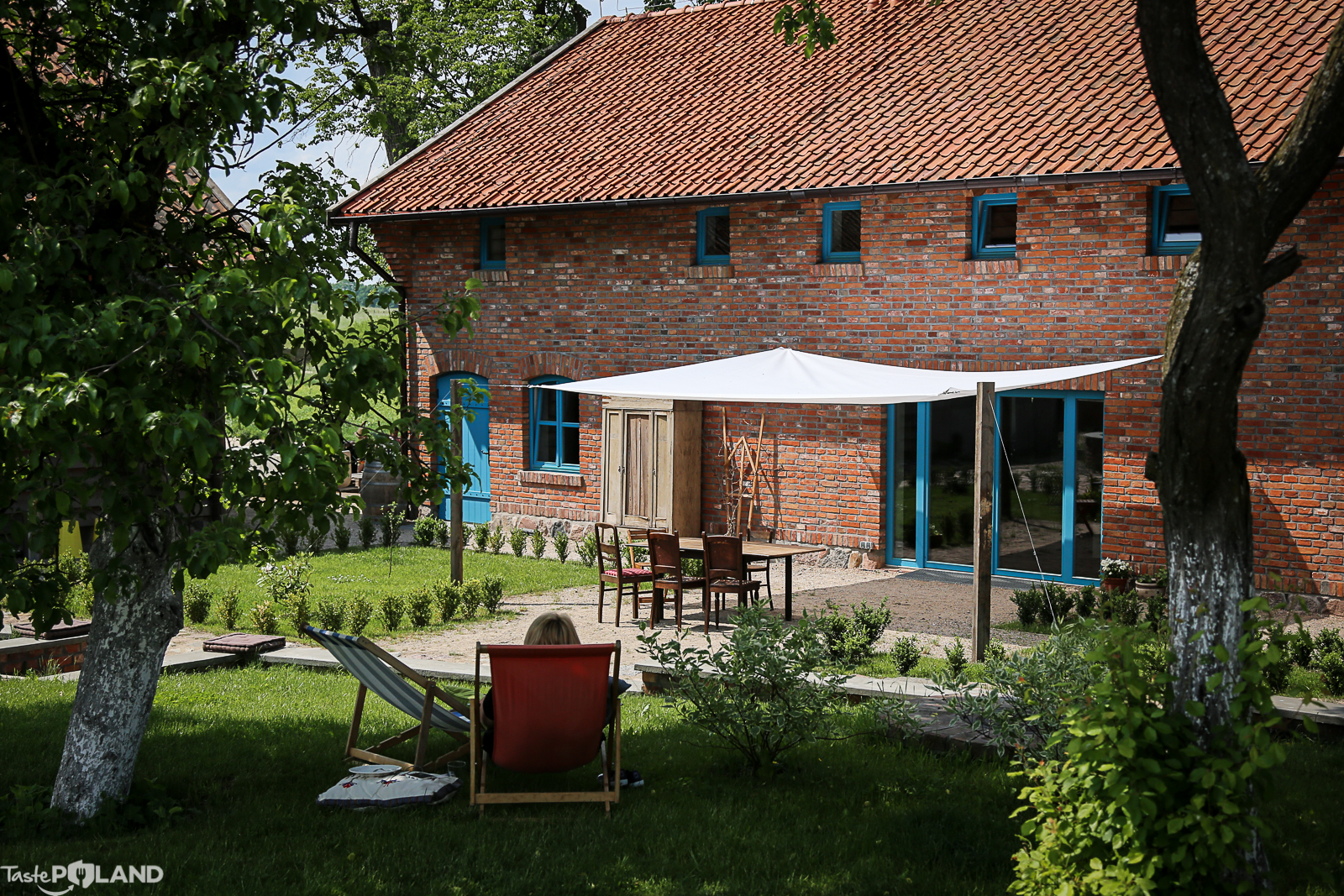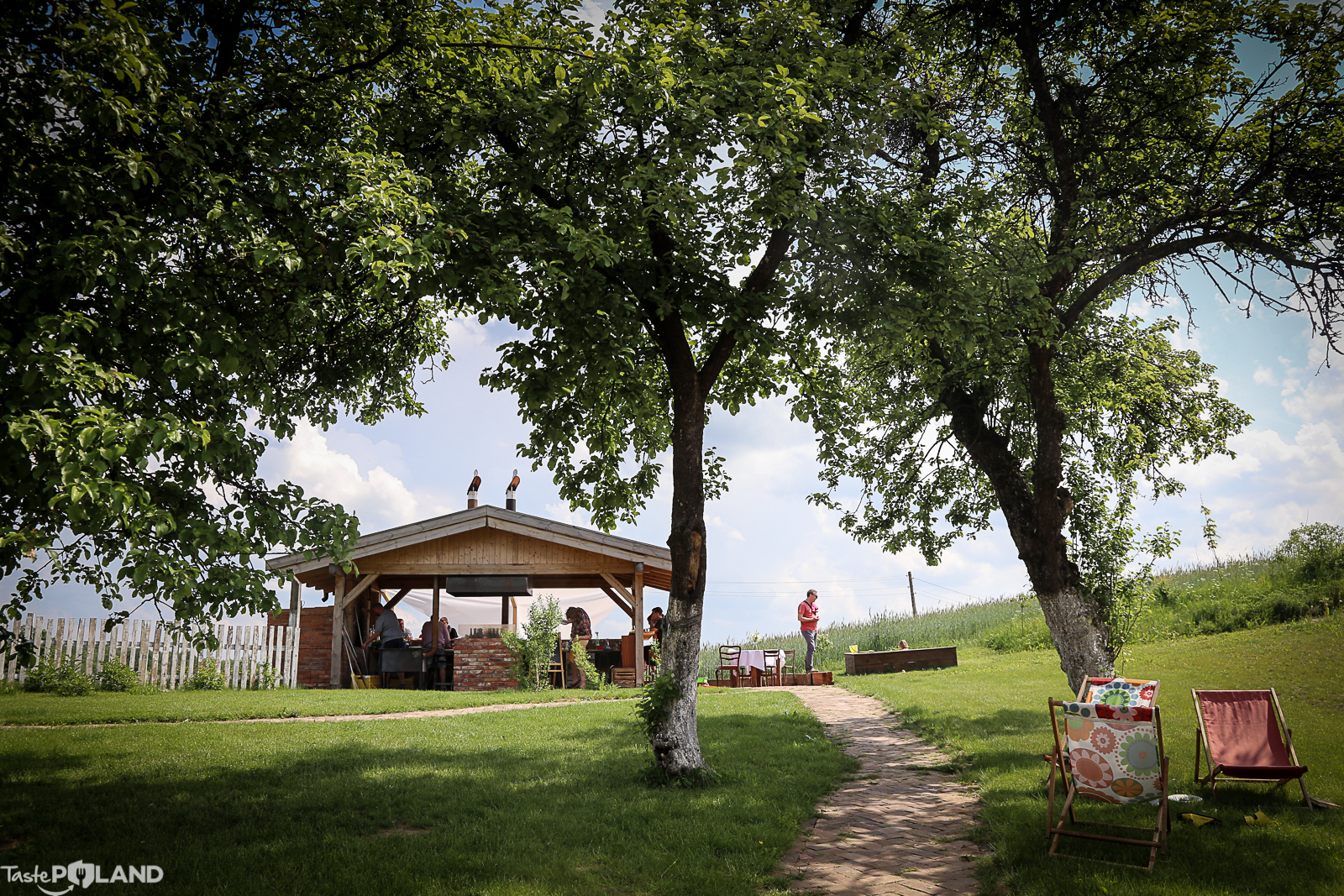 Kilka miejsc, gdzie można usiąść, by zjeść i wypić – poczynając od baru, kończąc na stoliku pod jabłonką. Nie zapomniano również o dzieciach. Jest piaskownica i huśtawki, więc maluchy nie muszą się nudzić.