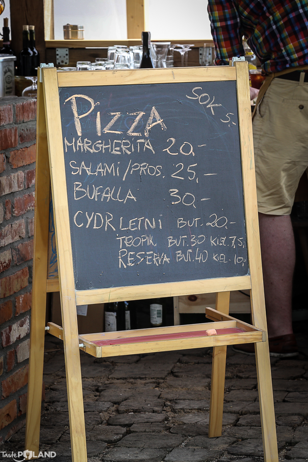 W tym roku w sobotnie popołudnia ma królować cydr i pizza. Pizza jest nie byłe jaka, bo własnoręcznie wykonana przez właściciela pana Marcina, który rządzi przy piecu opalanym drewnem. Wielkiego newsa „sprzedała” jego żona – uczył się aż w Neapolu i musimy przyznać, że nauka nie poszła w przysłowiowy las. Dla mnie pizza – to dobre ciasto, smaczny sos i ser oraz właściwe proporcje. Tu wszystko było idealne. Do wyboru 4 opcje: Margarita/Prosciutto/Salami oraz Buffala. Mam nadzieje, że dołączy do tego grona jakaś pizza inspirowana warmińskimi produktami. Byliśmy świeżo po wizycie na Koziej Farmie w Złotnej, więc gdyby było coś z ich kozim serem i jakimś innym fajnym lokalnym dodatkiem… na pewno bym się skusił.